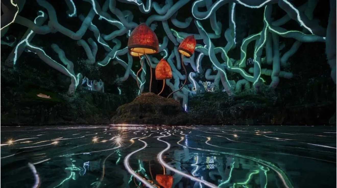 The journey begins in a space that still carries the ghost of industry — raw, familiar, grounded. Then something shifts. Corridors become stories. Walls breathe with light. Doorways invite you to choose not just a direction, but a mood.